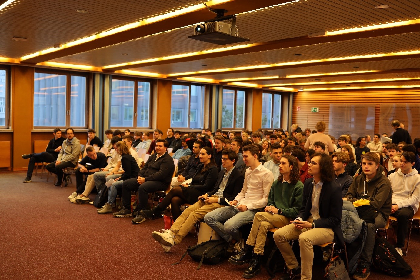 Zu Beginn der Veranstaltung informierten vier Absolventen der letzten Jahre über das Studium an technischen Universitäten und Fachhochschulen in Wien, Graz und Linz. Wie sucht man sich die richtige Studienrichtung aus? Was kann man im Internet recherchieren und wann macht es Sinn, sich direkt vor Ort zu informieren? Besonderes Augenmerk richteten sie auf mögliche finanzielle Unterstützungen durch Stipendien oder studentische Mitarbeit an Instituten.