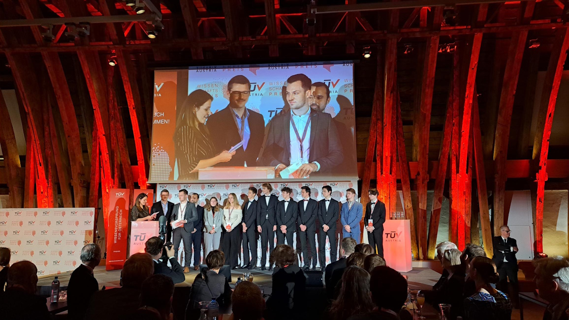 Beim TÜV Wissenschaftspreis werden aus zahlreichen Einsendungen die besten HTL Diplomarbeiten ausgezeichnet. Schüler:innen der TGM Kunststoff- und Umwelttechnik sind mit ihren Diplomarbeiten nun zum zweiten mal in Folge für die beste HTL Diplomarbeit nominiert worden. Heuer wurde das Thema „Biotenside als mögliche Netzmittel für die Brandbekämpfung“ in die Gruppe der drei besten HTL Diplomarbeiten Österreichs gewählt. Das Thema zeigt den Umweltbezug der breit aufgestellten chemischen Lehrinhalte der Abteilung Kunststoff- und Umwelttechnik. Die Prämierung der Arbeiten fand am 25.11.2024 im festlichen Kuppelsaal der TU Wien statt.