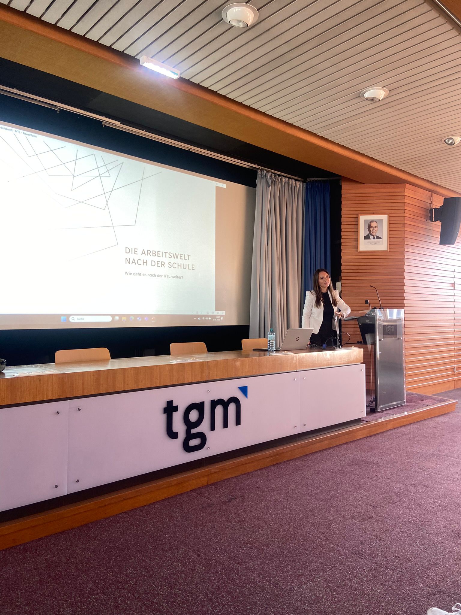 Zu Beginn stellte sie die verschiedenen Möglichkeiten nach der HTL vor. Ob ein Studium, der direkte Berufseinstieg oder ein Auslandsaufenthalt – jede Option hat ihre Vor- und Nachteile, die individuell abgewogen werden müssen. Nachdem die Schülerinnen und Schüler ihre Optionen kennengelernt hatten, ging es weiter mit dem Bewerbungsprozess. Petra Stern-Kasmader erklärte, worauf es bei Lebenslauf und Anschreiben ankommt: eine klare Struktur, fehlerfreie Formulierungen und ein professionelles Foto sind essenziell. Im anschließenden Teil gab sie praktische Tipps für das Vorstellungsgespräch. Neben einem souveränen Auftreten sind Pünktlichkeit, angemessene Kleidung und eine gründliche Vorbereitung auf das Unternehmen entscheidend. Auch der richtige Umgang mit typischen Interviewfragen wurde thematisiert.
