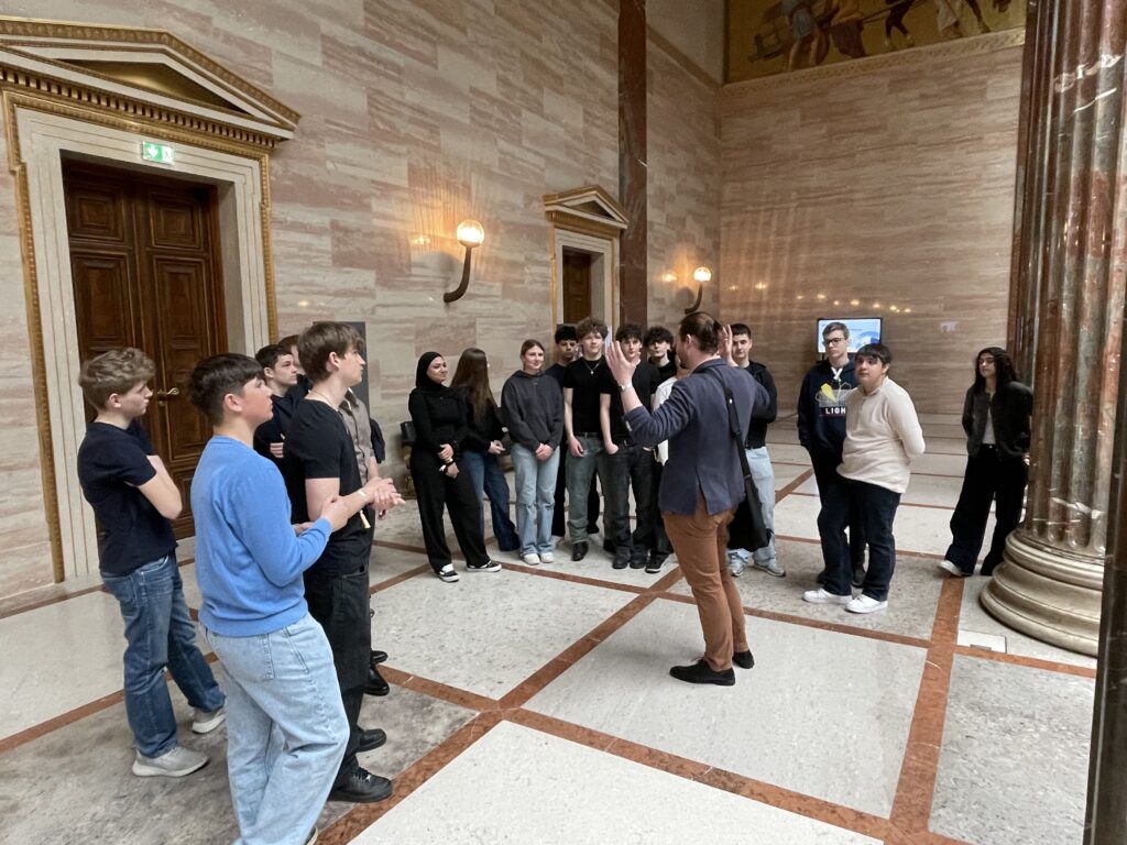 „Wie wird man eigentlich Abgeordnete:r? Warum ist die Säulenhalle so imposant? Und wie läuft eine Sitzung im Nationalrat eigentlich ab? Eine Antwort auf diese und viele weitere Fragen bekamen die Schüler:innen der 2CHWIL bei ihrem Besuch im Parlament. Abgerundet wurde der Besuch mit einer Besichtigung der interaktiven Dauerausstellung ‚Demokratikum‘, in welcher die Schüler:innen nochmal die Gelegenheit bekamen, ihr Wissen über die Entwicklung der Demokratie in Österreich zu vertiefen.“