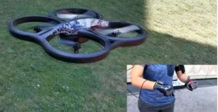 Um die Gestensteuerung zu realisieren, wurden Bewegungssensoren eingesetzt. Diese Sensorik wird am Handschuh des Betreibers befestigt. Zwei Microcontroller übernehmen die Bewegungsdaten der beiden Bewegungssensoren und leiten diese über W-LAN an das zentrale Betriebssystem Robot Operating System weiter. Das Robot Operating System (ROS) ist ein Software-Framework für Roboter und Drohnen.